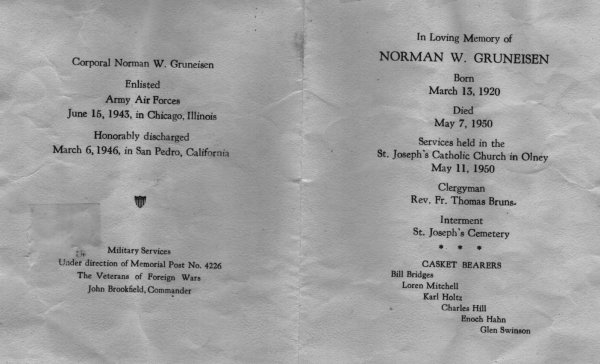 Norman Webber Gruniesen b. March 13, 1920 d. May 07, 1950 Olney, Illinois