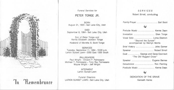 Peter Tonge Funeral Card