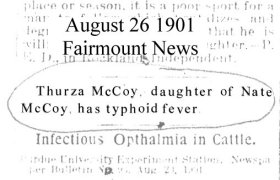 Thurza McCoy, daughter of Nate McCoy, has typhoid fever.